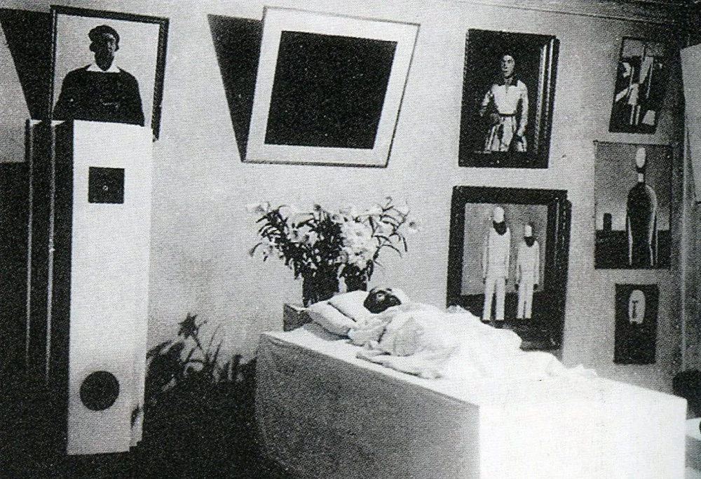 David Bowman in his death bed (film still, 2001: A Space Odyssey)